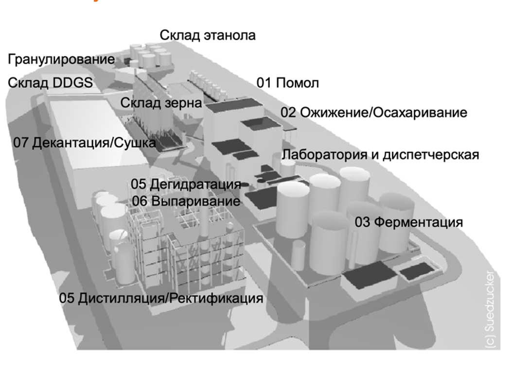 Технологические участки завода по производству биоэтанола
