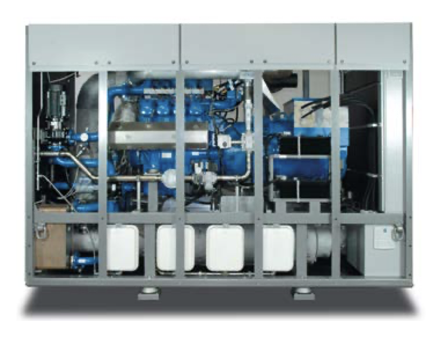 ENERGIN® CHP - це компактні комбіновані теплоелектростанції з високоефективним вилученням тепла з охолоджуючої води двигуна, мастила, першого ступеня контуру охолодження суміші та вихлопних газів газового двигуна. Завдяки компактній конструкції їх легко встановити та заощадити місце, оскільки всі компоненти, такі як газовий двигун, генератор, теплообмінники, циркуляційні насоси, вихлопні первинні глушники, а також шафи управління та розподільчі пристроями, прокладені та підключені до загальної базової рами. ТЕЦ можна поєднувати з абсорбційним охолоджувачем, щоб навіть виробляти охолоджену воду.
