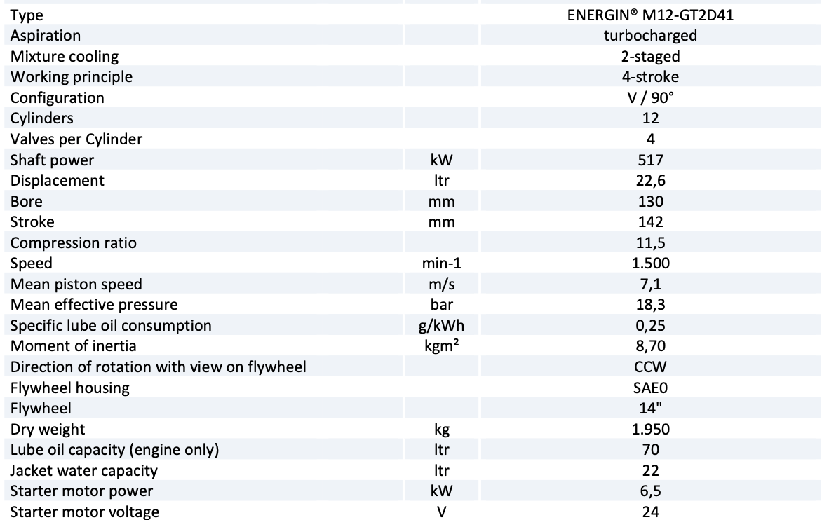 - Варіанти палива: природний газ, СПГ, біогаз, деревний газ, зріджений газ та синтез-газ