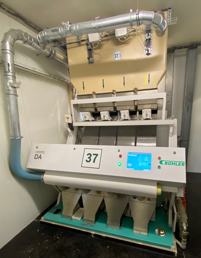 После пневмостола, при необходимости, отсортированный продукт подают на оптический сепаратор.